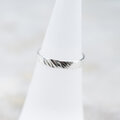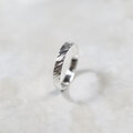 リング表面に職人が1点ずつ丁寧に槌目模様を打ち込み、シンプルながら個性的な質感をプラス。斜めに入る不均一な凹凸が光を柔らかく乱反射させ、着用すると存在感を放ち、上品に映えるデザインです。