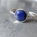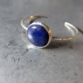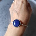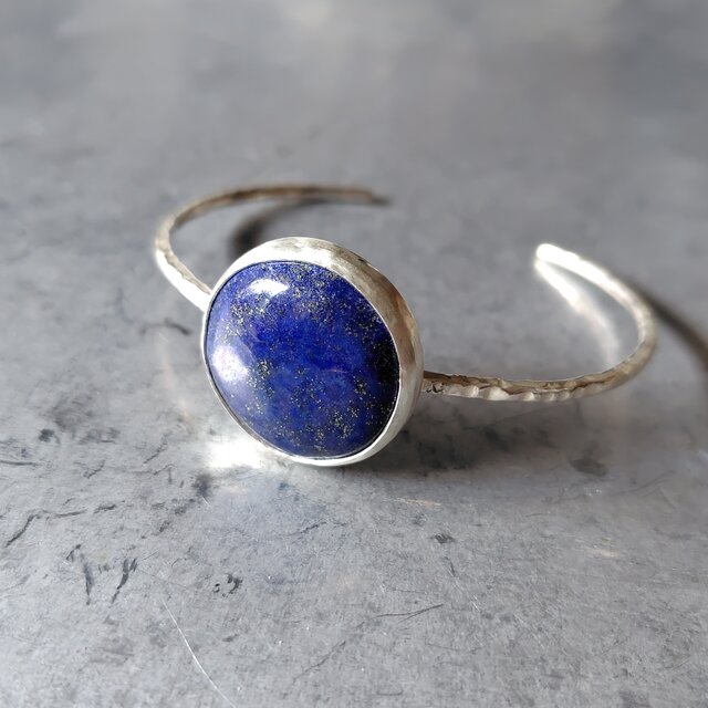 深いブルーに煌く細かなパイライトが印象的なラピスラズリをシルバーバングルに仕立てました。