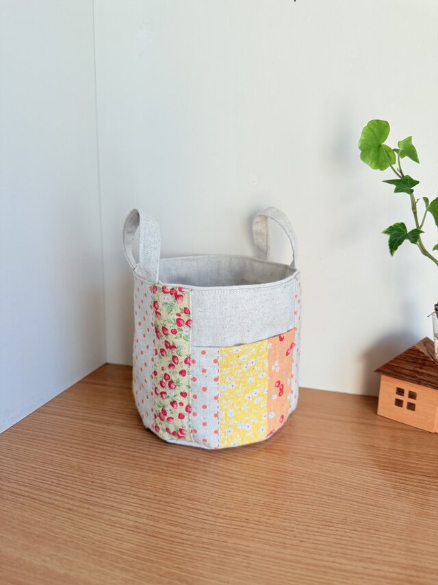YUWAパッチワークのバケツ型小物入れ(ベリー)