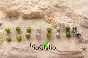 可愛らしいキューブカットの深みのある落ち着いた緑色のネフライトと柔らかなくすみカラーのグレーのグレーオニキスを7連に繋ぎました。