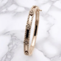 クローバーのバングルは、繊細なクローバーのモチーフが特徴的な高級ジュエリーです。華やかでエレガントなデザインで、女性らしさを引き立てるアクセサリーとして人気があります。