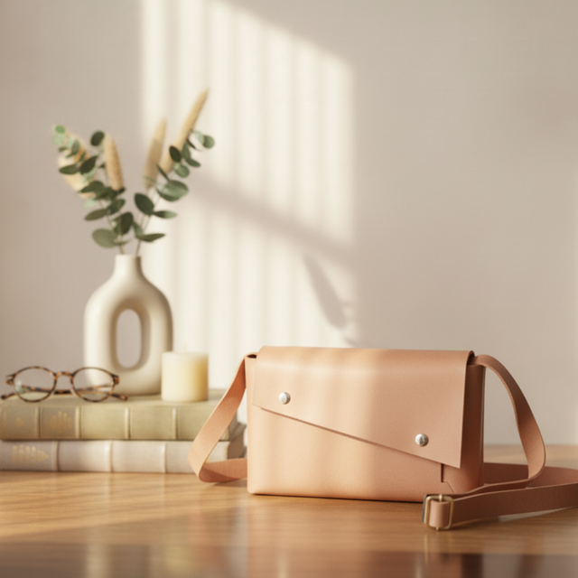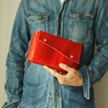 長方形のストレートラインを基調とした端正なシルエットは、無駄を削ぎ落とした美しさと、革そのものの存在感を静かに引き立てます。