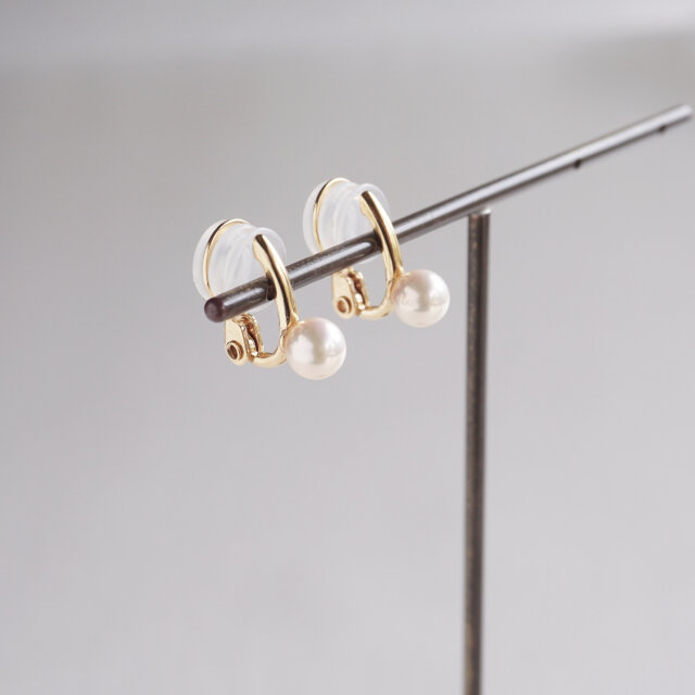 耳たぶにそっと寄り添う5.5〜6.0mmの小粒パールが、