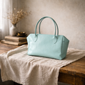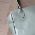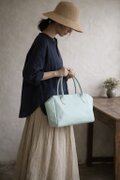 ライトブルーの牛革は、やわらかな色合いとしっとり手になじむ触り心地が特徴。