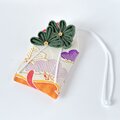 素敵なお守り袋が2つ届きました。 絞りの生地の色合いと大輪の花がとても華やかでキュートです。 白梅のものは、奥ゆかしさと気品を感じました。 どちらも大変気に入りました。大切に使わせていただきます♪