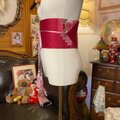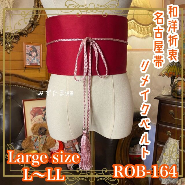 【名古屋帯 リメイク サッシュベルト 飾り帯 和洋折衷 ハンドメイド レトロ 古着 L〜LL対応 月夜に咲く花のような深紅 ROB-164】