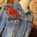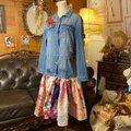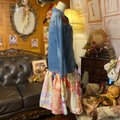 【 和洋折衷リメイク 浴衣 デニム ジャケット パッチワーク コラージュ ドッキング 切り替え レトロ 古着 ハンドメイド 薔薇と花々の共鳴 0-91 】