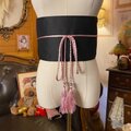【名古屋帯 リメイク サッシュベルト 飾り帯 和洋折衷 ハンドメイド レトロ 古着 L〜LL対応 漆黒に淡香がゆれる ROB-165】