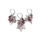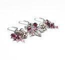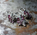 蕾カレンシルバー&リーフ型ヴィンテージピュータとたわわなガーネット、インドシルバー鈴の3点ピアス