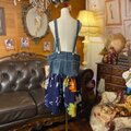 和洋折衷リメイク 浴衣 デニム オーバーオール サロペット ワンピース パッチワーク コラージュ ドッキング 0-94
