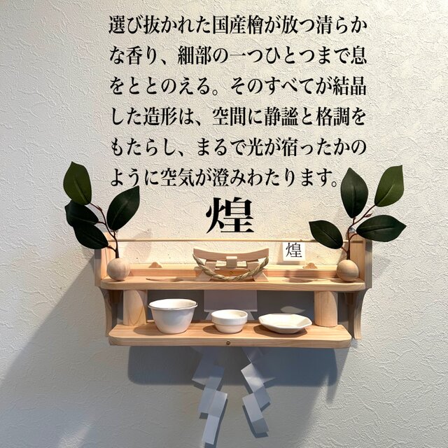 幅37cm × 奥行19cmという堂々たる寸法は、祈りの場としての存在感を放ちながらも、現代の住まいにすっと馴染みます。