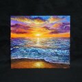 「水平線に沈む夕日」は、赤と黄とオレンジと紫の空が織りなす美しいグラデーションと、沈む夕日を見つめる瞬間を描いた特別な油絵作品です。波間に揺れる海面、そして砂浜に広がる太陽光が、心に安らぎをもたらすことでしょう。この作品は、海と夕日を愛する方々に特におすすめで、見るたびに異なる感動をお届けします。この特別な油絵で、心豊かなひとときをお過ごしください。