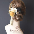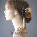 椿 リボン 水引 かすみ草 ヘッドドレス ヘアアクセサリー 髪飾り*ウェディング 成人式 卒業式 白無垢 和装 袴 黒 ゴールド
