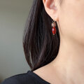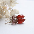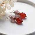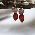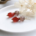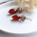 ドイツ製プラムカラーのビーズと、艶やかな天然石レッドアゲートを組み合わせた、秋冬おすすめカラーのピアス/イヤリング。