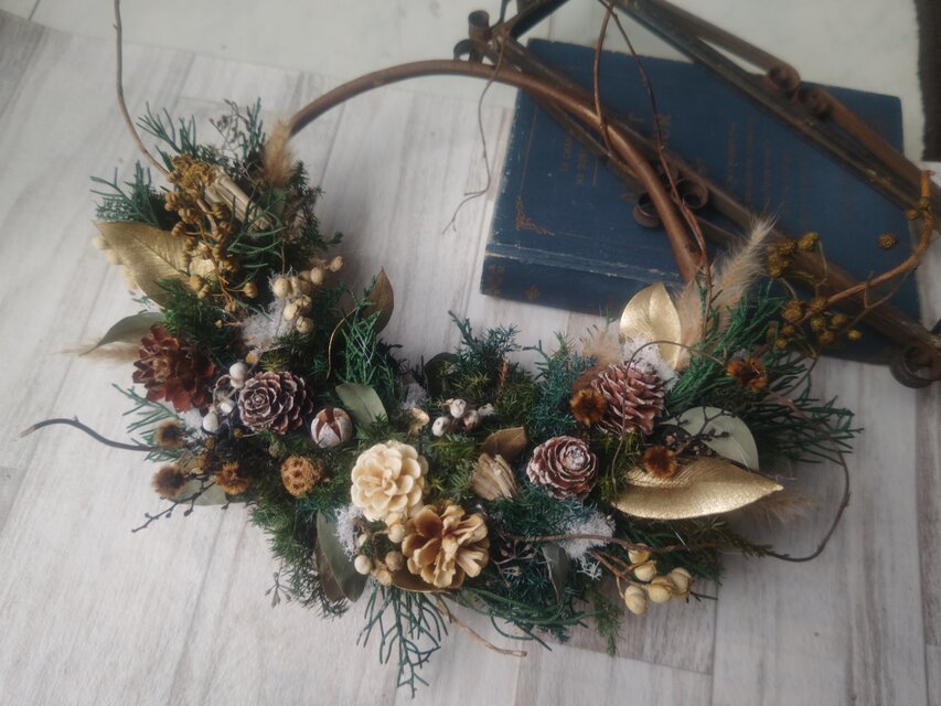 ホワイトゴールドをイメージしたハーフ型リース。