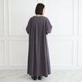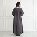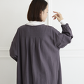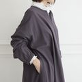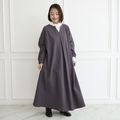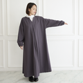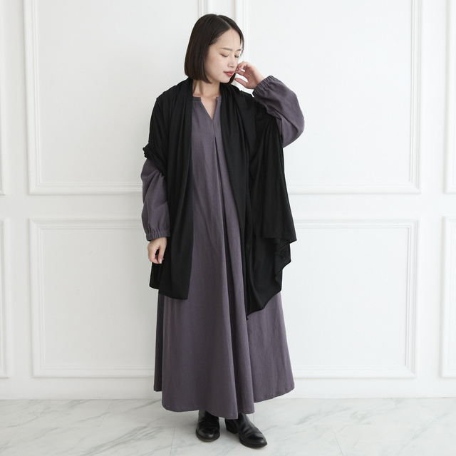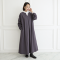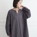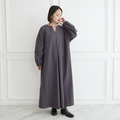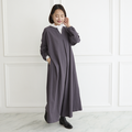 【着丈調整可能】体型カバー 身幅ゆったり コットン キーネック 長袖 ワンピース レトロパープル 0762R.Pp