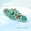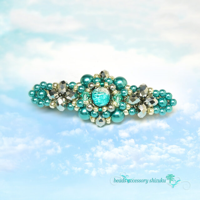 グリーン×シルバーのきらめきが、髪にそっと光を宿す華やかなバレッタです。