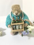この本格的なワインをどうしても持たせたくて、ジリスちゃんの手の角度や抱え方にこだわって制作しました。