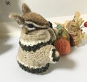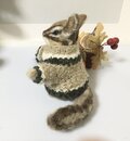 手編みのノルディックセーターで、シマリスの冬の装いを演出。
