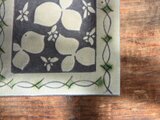 板状の素地に白い化粧泥を掛けエンレイソウを描いてから余分な化粧泥は削り落として図柄だけを残しています。