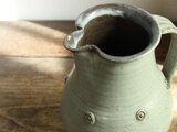 ●表面が乾いてきたらボディにハンドル(持ち手)を接着します。(接着には粘土をクリーム状に溶いたものを使用)