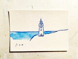 イラスト 原画 「灯台」※木製額縁入り インテリアアート 海の絵 ミニ原画