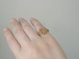 ブライトゴールド色のクリスタルパールと、純金メッキを施されたガラスビーズをメインで合わせた、重厚なゴールドカラーのリングです。