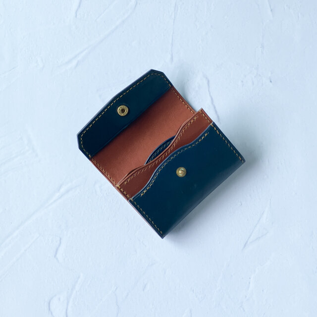 フラップミニウォレット(ブルー×チョコ) ミニ財布 バイカラー イタリアンレザー 革 コンパクト財布 小銭入れ