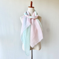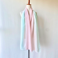 淡いピンク色と青緑色の柔らかな印象のストールです。暗くなりがちな秋冬コーデを明るくしてくれます。