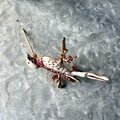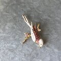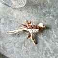 ゴールドトーンをベースにホワイトエナメルペイント、ピンクのラインストーンが煌めくバードモチーフブローチ。