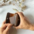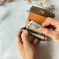 手のひらに収まるコンパクトなサイズでありながら、必要十分な機能性を備えたフラップ型のミニ財布です。