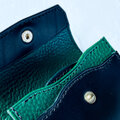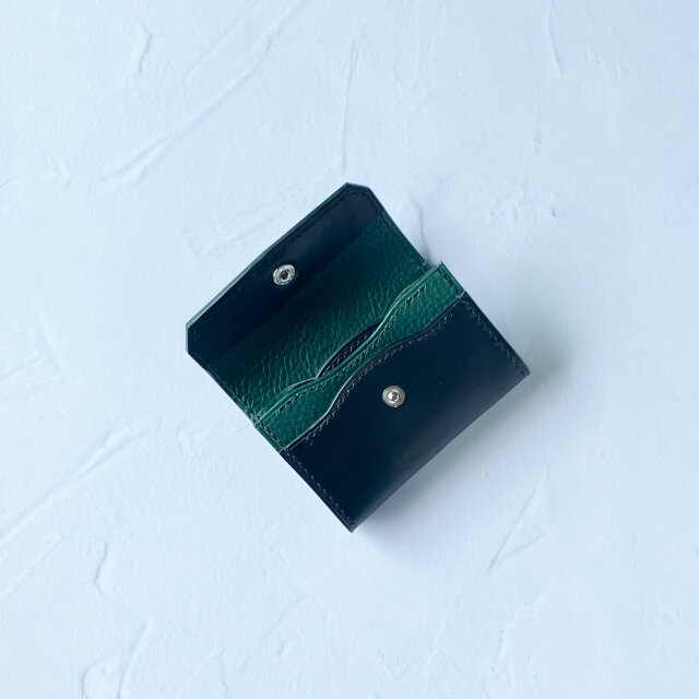 フラップミニウォレット(ブラック×グリーン) ミニ財布 バイカラー イタリアンレザー 革 コンパクト財布 小銭入れ