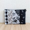 他、刺繍生地・ブロックチェック柄・リボン柄など、モノトーンのポーチです。