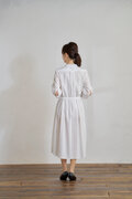 ノスタルジックな可愛いさにあふれる清楚なコットンレースのワンピース、5分袖に程よい着丈で落ち着きがあり、大人のチロリアンファッションが愉しめます。ウエストリボンは、後ろで結んだり外したりとアレンジできます。