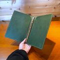 ただ、革のバインダーは開いても閉じてしまうのが不便ですよね…