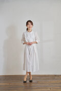 ノスタルジックな可愛いさにあふれる清楚なコットンレースのワンピース、5分袖に程よい着丈で落ち着きがあり、大人のチロリアンファッションが愉しめます。ウエストリボンは、後ろで結んだり外したりとアレンジできます。