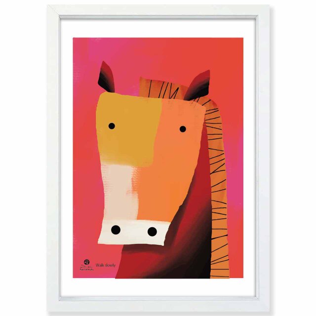 ゆっくり歩もう のん気なホースアート 癒やしの馬アートポスター。