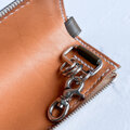 このキーケースは、状況により片手で扱うことも考慮して、ファスナーのロック機構はつけていません。コンパクトでポケットやバッグにすっきり収まるので日常使いに最適です。腰にぶら下げてもジャラジャラせず、大切なカギを保護します。