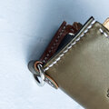 深みのあるオリーブに、定番のキャメルを合わせた、自然を感じさせる配色。白いステッチとシルバー金具が軽やかに馴染み、素朴なトーンに仕上がりました。