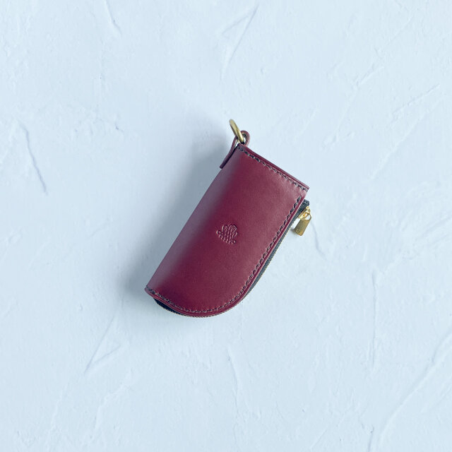 ジップキーケース(ワイン×グレー) スマートキー 革 イタリアンレザー バイカラーのコピーのコピーのコピー