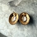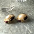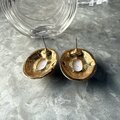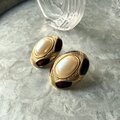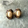 フェイクパールとエナメルペイントの、オーバル型ゴールドトーンピアス。