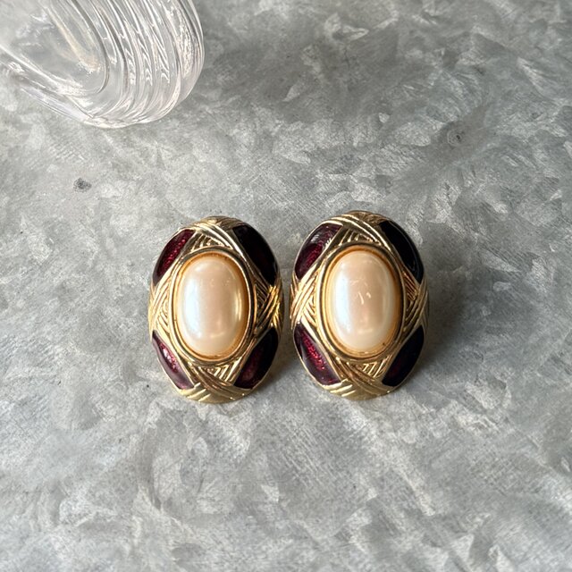 P480-ヴィンテージピアス・U.S.A. 1970〜80s Faux pearl brown enamel paint