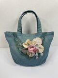 天然染料100%の藍とヤマモモで染めたトートバッグです。花びらも1枚ずつ手染めをした1点ものです。