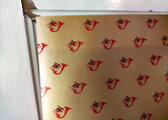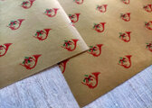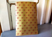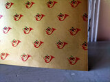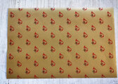 かなり薄手で、パラフィン紙のような繊細な紙質です。ゴールドカラーのベースカラーに、赤い小さなホルンのマークが、スタンプのようにあしらわれています。落ち着いた色味ですが、見れば見るほど好きになるような、素朴でとても愛らしい絵柄です。