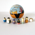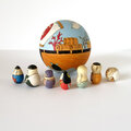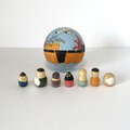 *入れ子のマトリョーシカ同様、外側の球体はぴっちりとしまります。湿気を帯びると木が膨張して閉まらなくなることがございます。上下を分けて保管することはおやめください。