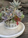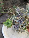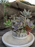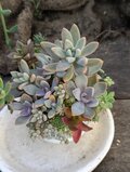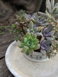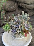 カラフルなつぶつぶ多肉植物の寄せ植えになっています。