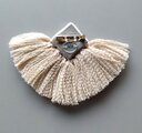 シャープな印象のスクエアモチーフに、たっぷりとタッセルをあしらったブローチです。