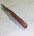 パドック無垢材を加工し着色せず透明のオスモカラー塗装で仕上げたバターナイフです。木のバターナイフはいかがですか?パドック材の質感が朝の一時をよリ幸せにしてくれます。