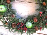 甘酸っぱい青りんごのオーナメントをアクセントに、優しいリースを作りました。