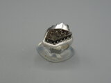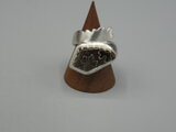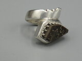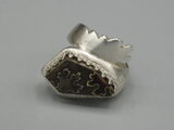リングのサイズは13号強、重さは12g、最大幅は25mm、手のひら側は6mm、金属部分は純銀です。